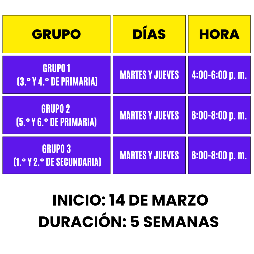 Este entrenamiento está dirigido a estudiantes de tercero de primaria hasta segundo de secundaria que