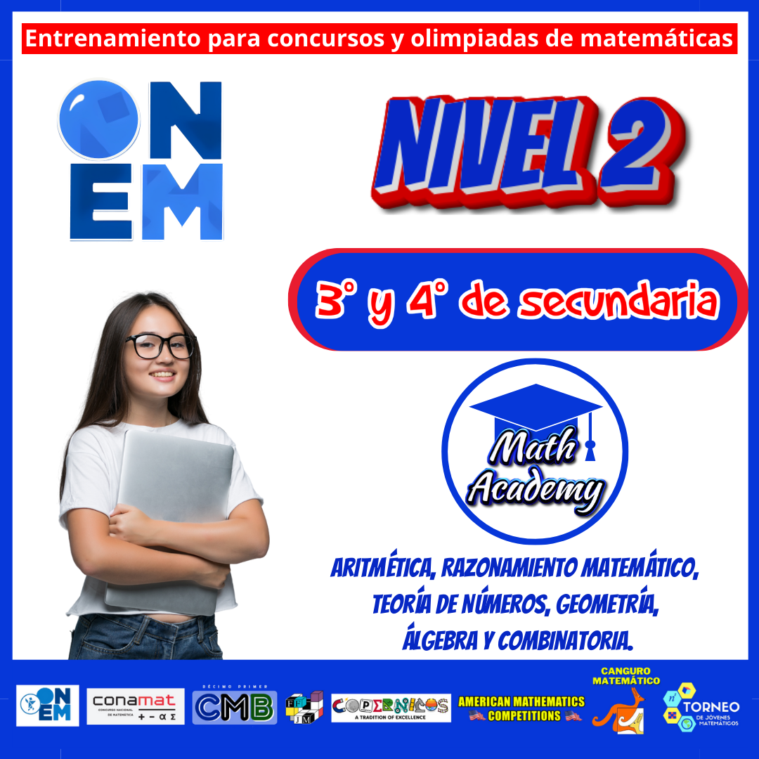 Entrenamiento para concursos y olimpiadas de Matemáticas dirigido a alumnos de 3° y 4° de secundaria donde se trabaja en función de los temas de la Olimpiada Nacional Escolar de Matemática ONEM, por lo cual, los estudiantes estarán preparados para muchos otros concursos que se realizan a nivel nacional e internacional. Los cursos que se enseñan son Aritmética, Razonamiento Matemático, Teoría de Números, Geometría, Álgebra y Combinatoria.
