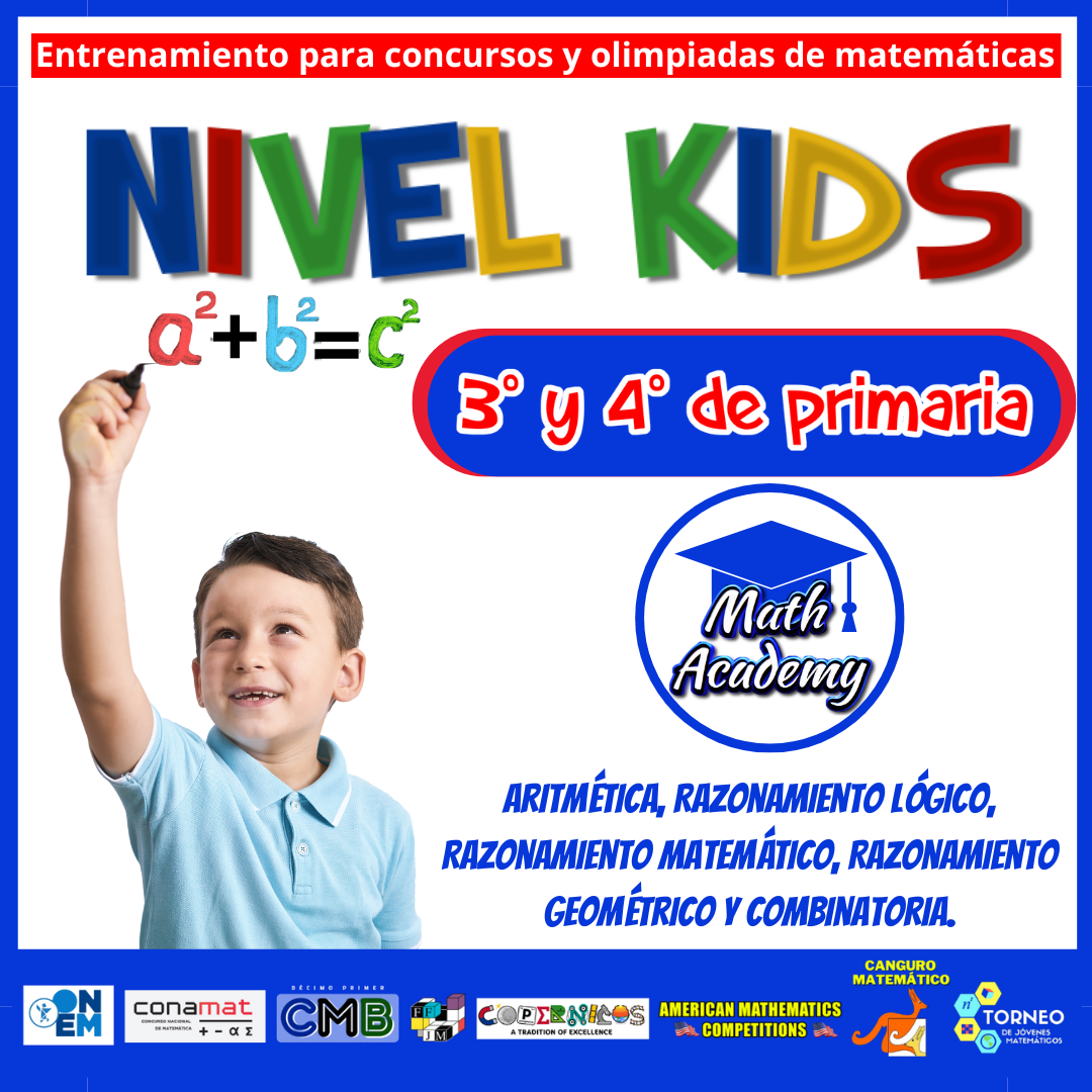 Entrenamiento para concursos y olimpiadas de Matemáticas dirigido a alumnos de 3° y 4° de primaria donde se trabaja en función de los temas del Canguro Matemático y Conamat, por lo cual, los estudiantes estarán preparados para muchos otros concursos que se realizan a nivel nacional e internacional. Los cursos que se enseñan son Aritmética, Razonamiento Lógico, Razonamiento Matemático, Teoría de Números, Razonamiento Geométrico y Combinatoria.