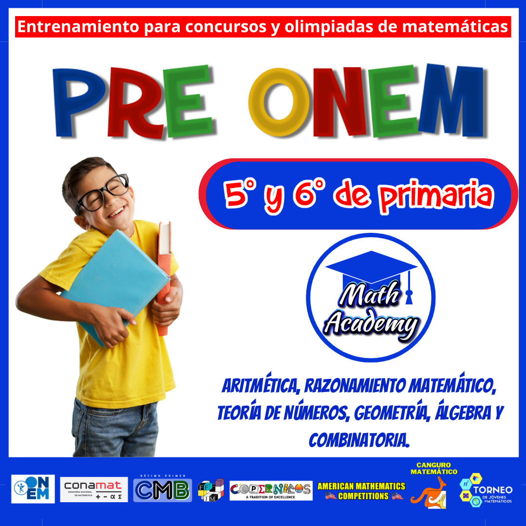 Entrenamiento para concursos y olimpiadas de Matemáticas dirigido a alumnos de 5° y 6° de primaria donde se trabaja en función de los temas del Canguro Matemático, que es un Concurso Internacional de los más importantes a nivel mundial, por lo cual, los estudiantes estarán preparados para muchos otros concursos que se realizan a nivel nacional e internacional. Los cursos que se enseñan son Aritmética, Razonamiento Matemático, Teoría de Números, Geometría y Combinatoria.